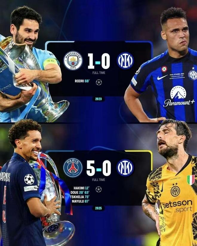 上赛季欧冠决赛,国米在昔日主帅小因扎吉提前跑路的情况下,被大巴黎5球血洗。按照这一历史规律来看,本赛季蓝黑军团意甲夺冠板上钉钉。