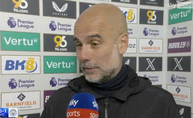 英超第34轮,曼城客场1-0击败伯恩利,赛后,曼城主帅瓜迪奥拉接受了天空体育的采访。